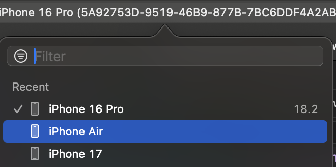 Xcode 26을 실행하시면, iOS 26 개발 tool 설치가 가능하고, 여기에서 iOS 26 simluator 를 설치가능해요. 설치 이후에는 iOS 26의 iPhone Air 같은 기종을 시뮬레이터로 선택해서 개발하실 수 있으니 참고하세요.