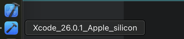 그렇게 macOS 15.5 -> 15.7로 업데이트 후, Xcode 26.0.1 release 버전을 설치했어요. 저는 M1 칩이 있는 맥북이라서 Apple silicon 버전으로 받았습니다. 기존 Xcode 대비 아이콘이 변경되었네요.