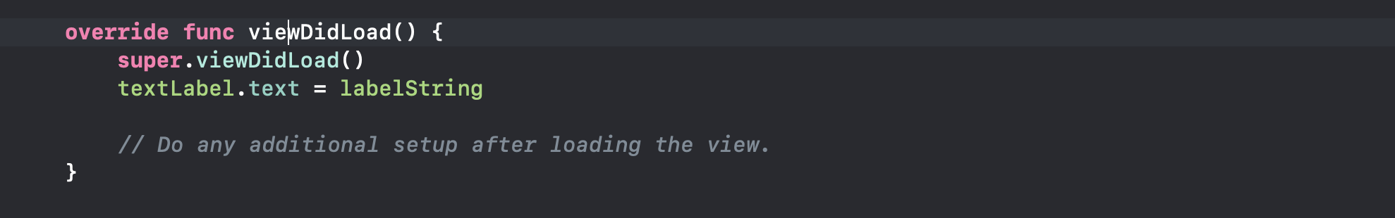 textLabel 텍스트에 데이터를 전달하는 시점은 두번째 뷰컨트롤러가 메모리에 올라가는 시점인 viewDidLoad에 지정하였습니다.