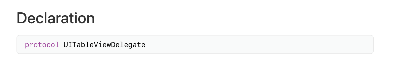 UITableViewDelegate 프로토콜은 UITableViewDataSource와 달리 의무적으로 사용해야하는 메서드가 없이 사용 가능합니다.