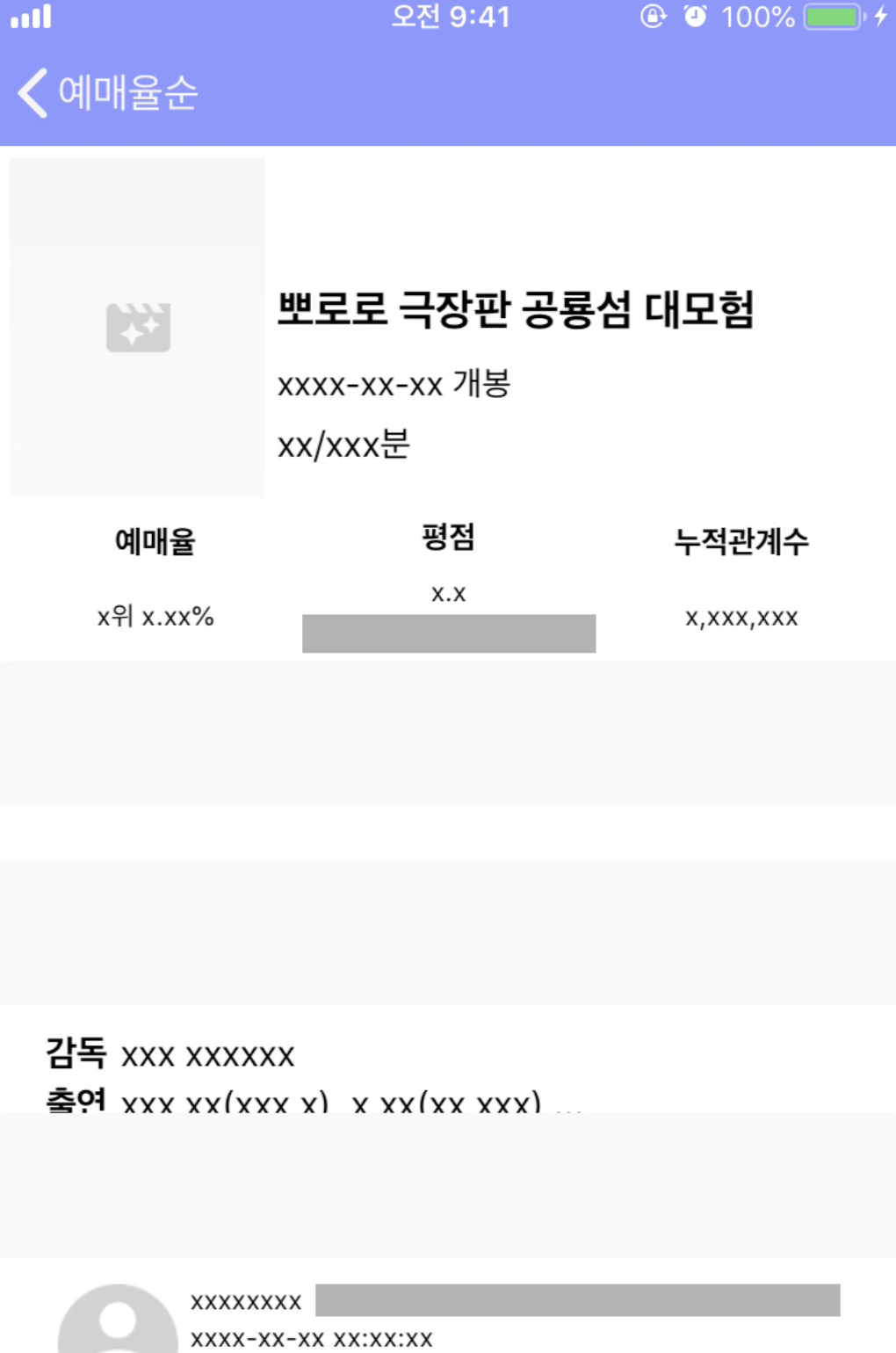 위 이미지처럼 컬렉션뷰 혹은 테이블 뷰 형식으로 영화 목록이 주르륵 나오는데요. 한 셀을 선택 하면, 그 셀에 해당하는 영화의 세부 정보가 나오는 방식입니다.