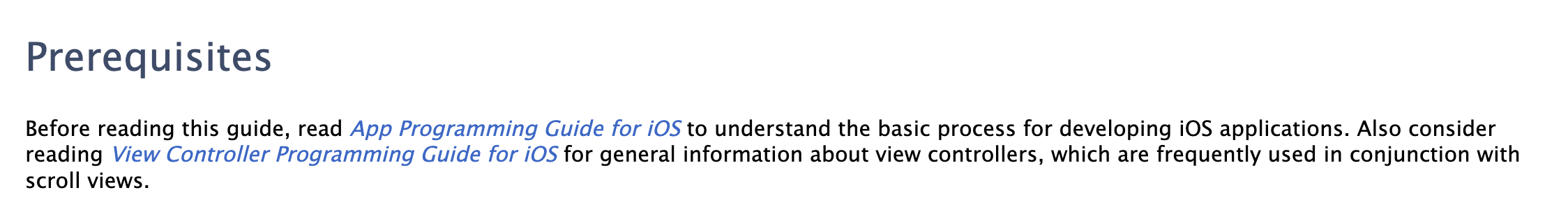 해당 가이드를 읽기 전에 iOS 앱 프로그래밍 가이드를 읽어보시고, iOS 앱개발에 대한 기초 과정을 이해하십시오. 또한 스크롤뷰와 함께 자주 사용되는 뷰컨트롤러에 대한 일반적인 정보가 있는 iOS 뷰컨트롤러 프로그래밍 가이드를 읽어보는 것도 고려하십시오.