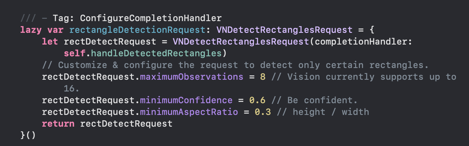 샘플앱을 보면 요청 타입에 따라 다르게 직사각형 박스를 그려줍니다. 이는 코드가 각각의 요청마다 다르게 작동하는 것을 보여줍니다. 각각의 요청을 초기화할 때, 완료 핸들러(completion Handler)를 구체화 하십시오.