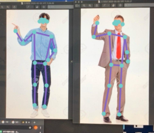 샘플 앱에서는 감지 된 각 포즈에 대해 입력 받았던 이미지 위에 와이어프레임을 그리는데, 각각의 관절 사이에 라인을 그려줍니다. 또한 이때 각각의 관절 위치에는 원을 표시해줍니다.