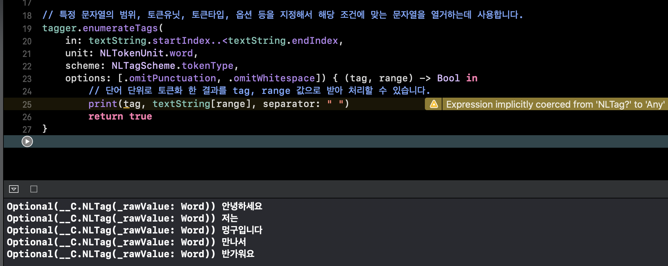 위와 같이 tagger의 enumerateTags 메서드의 결과를 보실 수 있습니다.