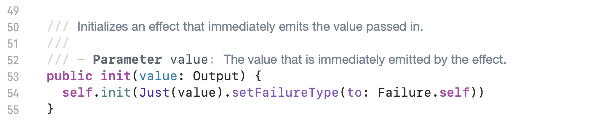 위 코드는 Effect의 생성자 중 하나입니다. 하나의 이벤트를 Just로 즉시 방출하고 있습니다. 만약 특정 이벤트가 실행되고 추가적인 이벤트 발생을 원치 않는다면 어떻게 해야할까요?